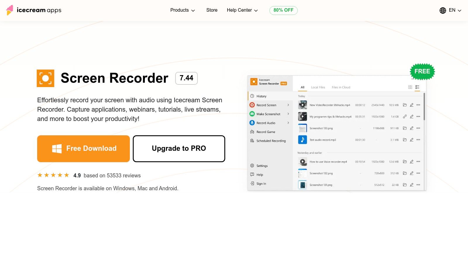 The icecreamapps.com website provides the freemium download for both macOS and Windows, clearly outlining the differences between its free and "PRO" tiers. The free version is an excellent best free screen recorder for macOS for basic tasks, but it has limitations, including a five-minute recording cap and a watermark on the output video. However, its clean interface, webcam overlay feature, and ability to capture system audio and microphone input make it highly accessible for beginners. The tool also includes a simple trimming feature for quick edits post-recording.