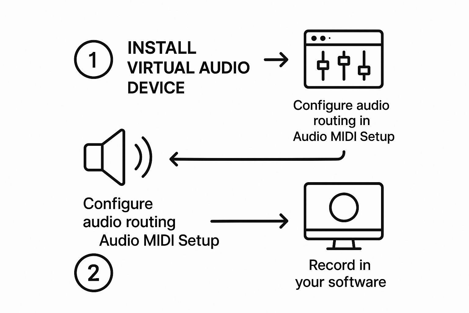 To get around this, we have to create our own solution. Essentially, we need to build a virtual audio bridge that reroutes the sound from your system before it hits your speakers, sending a copy of it directly into your recording software.