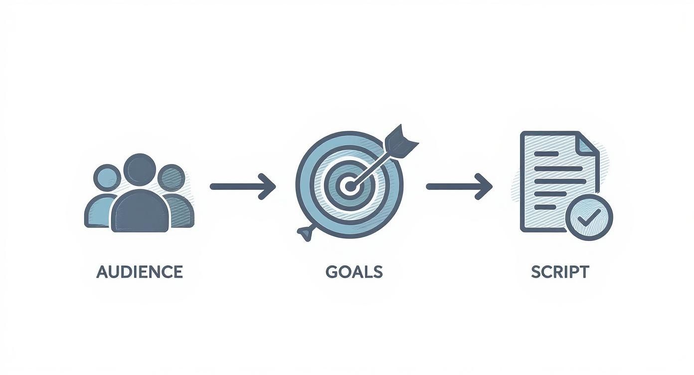 Think of this pre-production phase as laying the groundwork for a house. Without a proper foundation, everything you build on top of it will be shaky. Taking the time to map out your content ensures your message is sharp, your delivery is confident, and the final video looks and sounds professional.