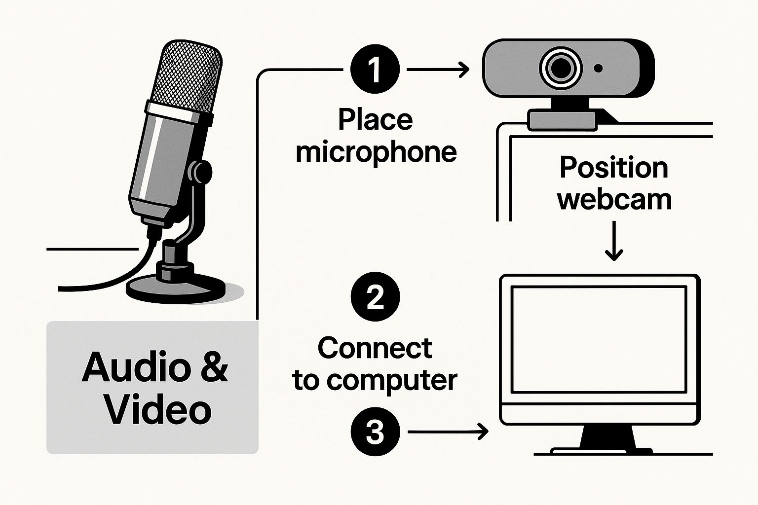 This process might seem like a lot of small decisions, but taking a moment to choose your video and audio sources thoughtfully pays off. It guarantees your final recording looks and sounds polished, setting a professional tone right from the start.