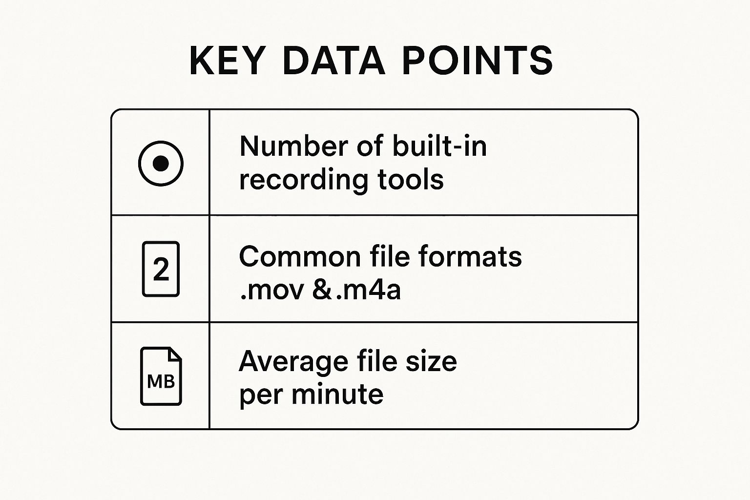 As you can see, these two native macOS apps can create standard .mov videos and .m4a audio files. A good rule of thumb to remember is that an average screen recording on your Mac will eat up about 50MB of space per minute. That's a super helpful tidbit for managing your storage, especially if you're planning a longer session.