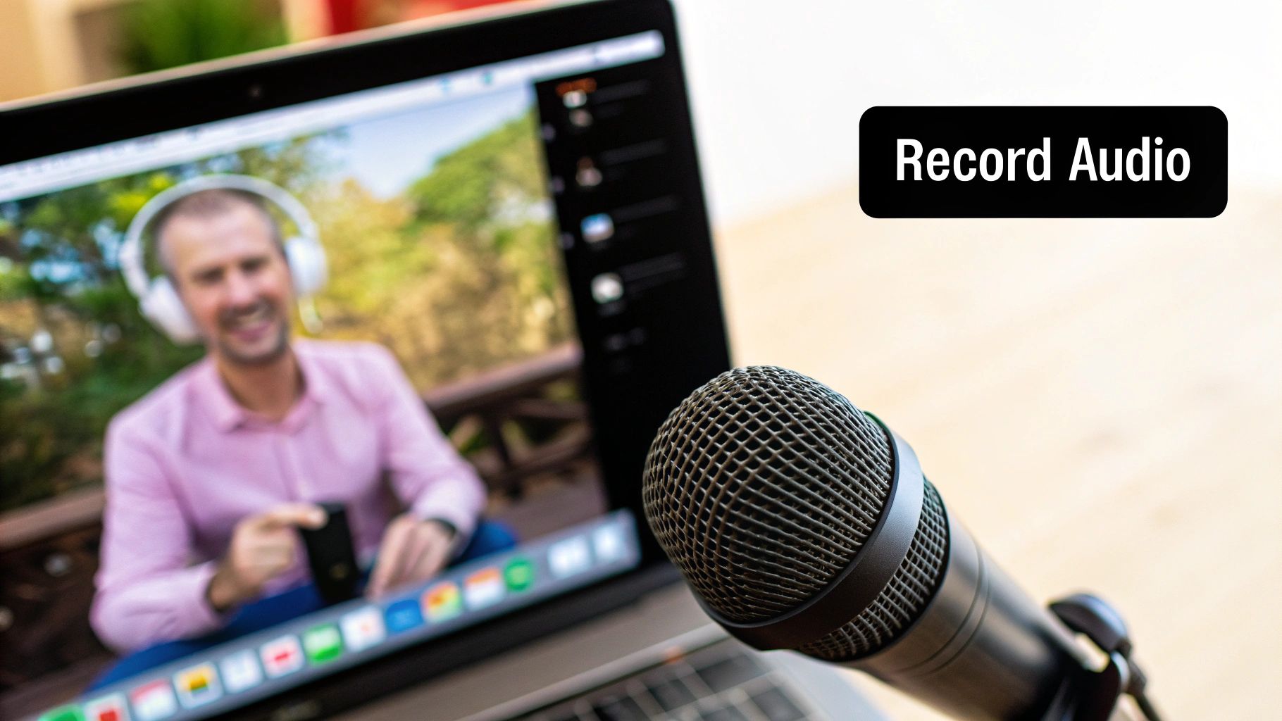 - Pick the Right Mic: Before you record, click the little arrow next to the record button to see your microphone options. Your Mac's built-in mic works in a pinch, but an external USB microphone will deliver far superior, clearer audio. This is a critical step we dive into in our guide on using a screen recorder with voice.