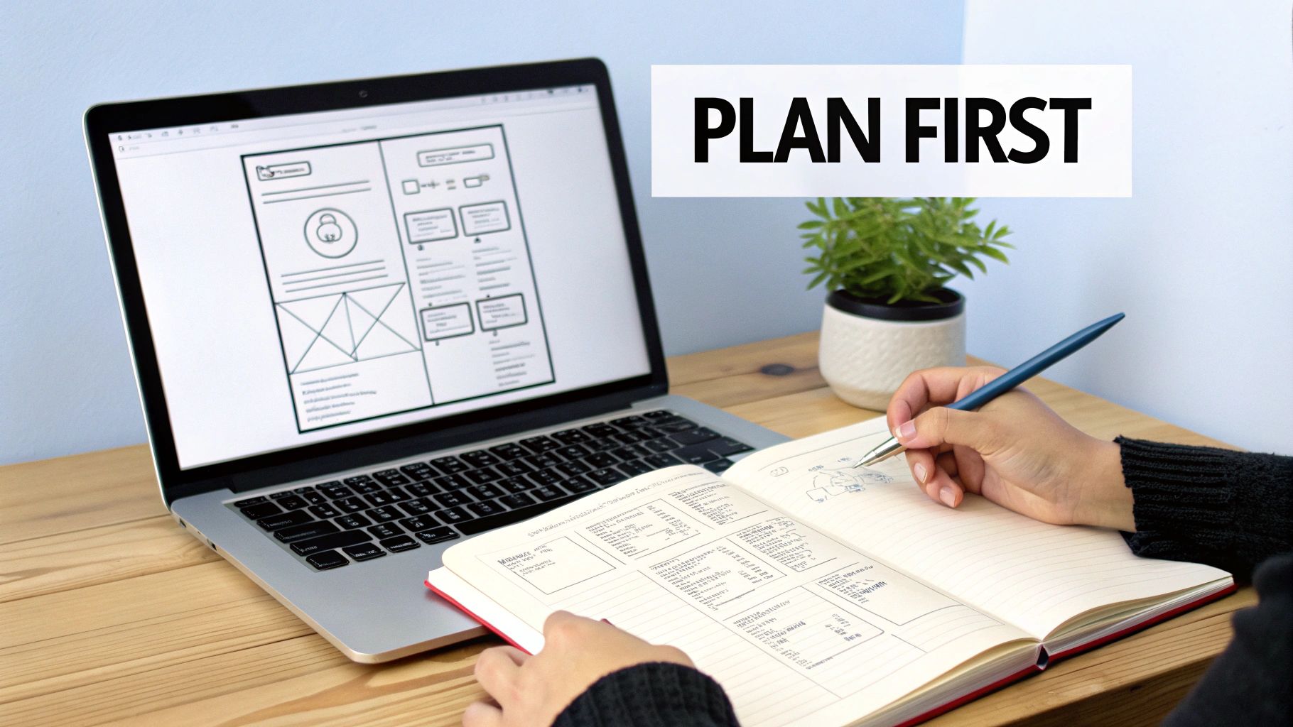 Before you even think about software or microphones, the most important work happens with a simple notebook or a blank document. I can't stress this enough: a bit of planning is what separates polished, professional content from clumsy recordings that take forever to fix in post-production. It’s the key to a smooth recording session and an even smoother editing process.