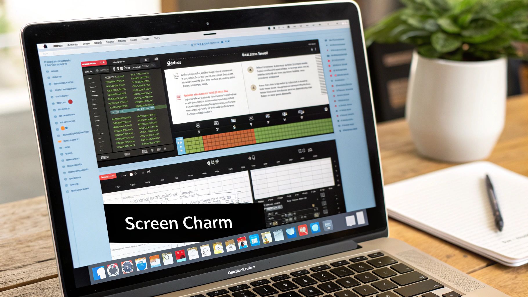 A big one is getting truly high-resolution video. Your MacBook Air's screen is sharp, but the recording software can sometimes be the weak link. For example, if you're trying to record a 5K external display, you'll often find the built-in tools cap the output at a lower resolution, which just kills the final quality. This is a well-known frustration among Mac power users, and you can read up on the screen resolution limitations if you want to dive deeper. Screen Charm is designed to handle these demands, making sure your recordings look every bit as crisp as the display you’re capturing.