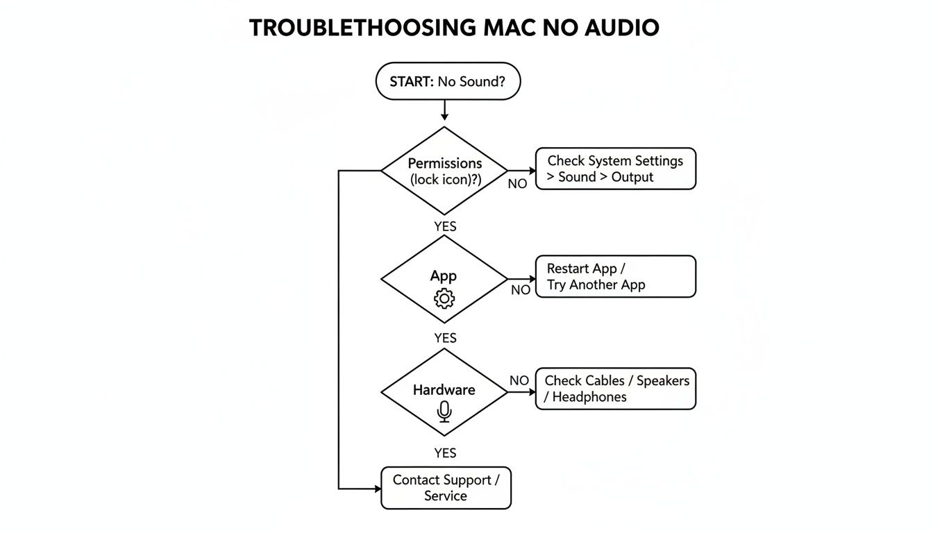 This flowchart lays out the troubleshooting path I always follow. It’s a logical way to check the most common macOS issues in order, from system-wide problems to app-specific ones.