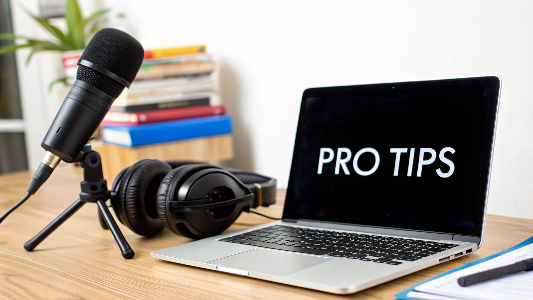 Always find a quiet room. The hum of a fridge or the rumble of traffic outside can ruin an otherwise perfect take. And don't just wing it—having a simple script or even a few bullet points to guide you will make your delivery sound much more confident and clear.