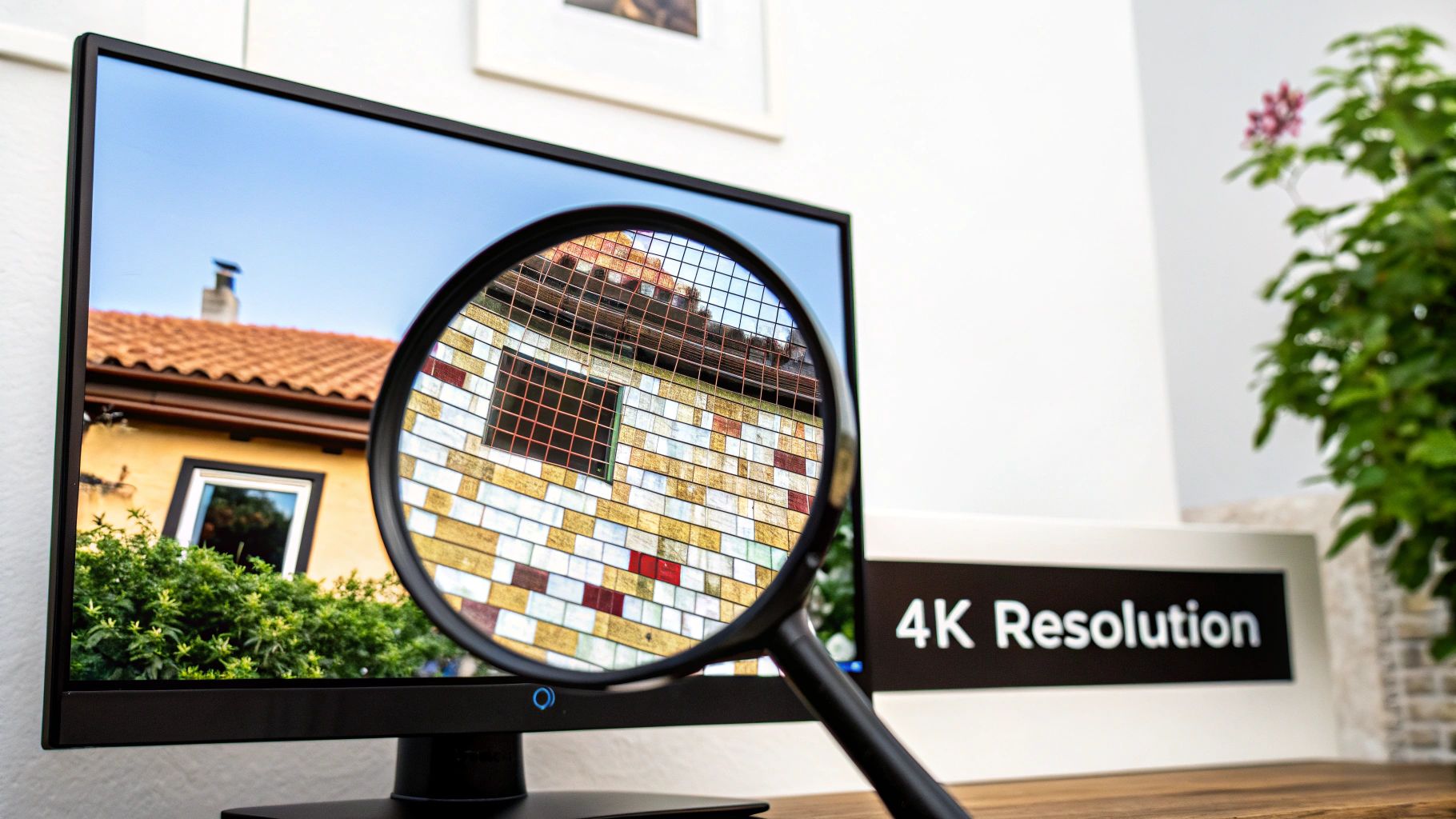 It packs in a much denser grid of 3840 x 2160 pixels, giving you a staggering 8.3 million pixels. That’s literally four times the amount of detail you get with 1080p HD. This massive leap in pixel count is what gives 4K its famous crispness and realism. For a deeper dive into the numbers, check out this great explainer on pixel counts from Howbigg.